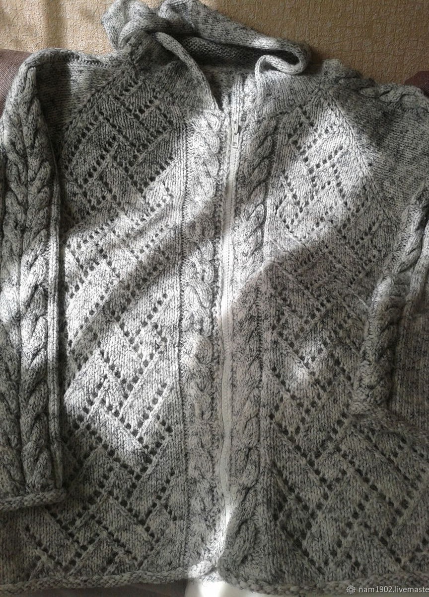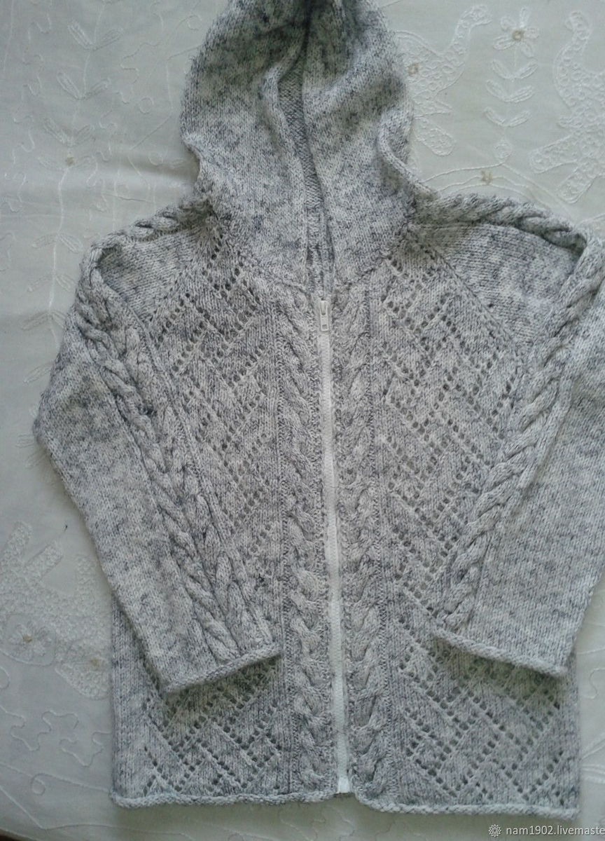 Кофта связана спицами из полушерстяной пряжи. Мягкая, теплая, комфортная в нОске и приятная к телу. На каждый день, для прогулки и занятий спортом.