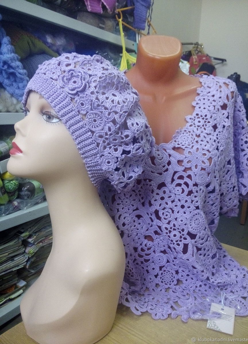 кофточка крючком, берет крючком, берет вязаный, кофточка вязаная, сцепное кружево