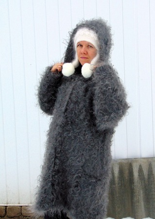 Пальто ручной работы.Прядение ручное.Связано из козьего пухаПух идёт на изготовление пальто такой же как на тёплые шали..Очень теплое.Свяжу на заказ по Вашим меркам.Цена зависит от размера.