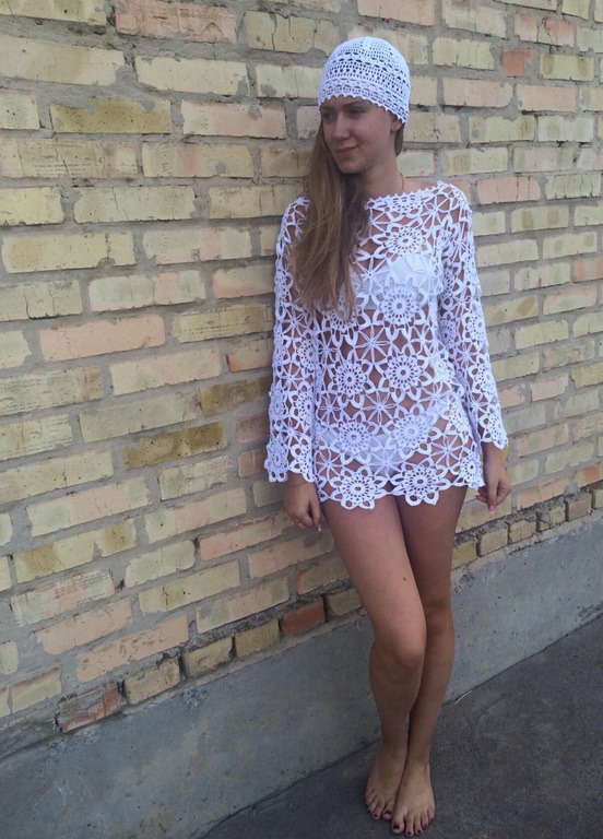 ажурный комплект на все случаи жизни. Если одеть туничку на купальник ,будет пляжная. Если одеть на майку подойдет и на работу и на праздник. размер могу связать любой. До 50 размера цена остается прежней, потом с каждым размером + 500 руб