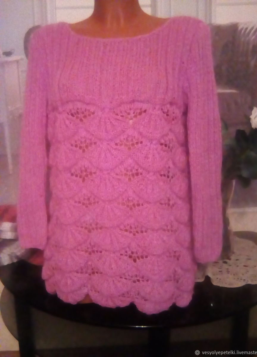 стильный пуловер связанный спицами с рукавами 34 ажурным низом и кокеткой связанной резинкой придаст уверенности в себе любой моднице в нем вы будите чувствовать себя комфортно в любых ситуациях