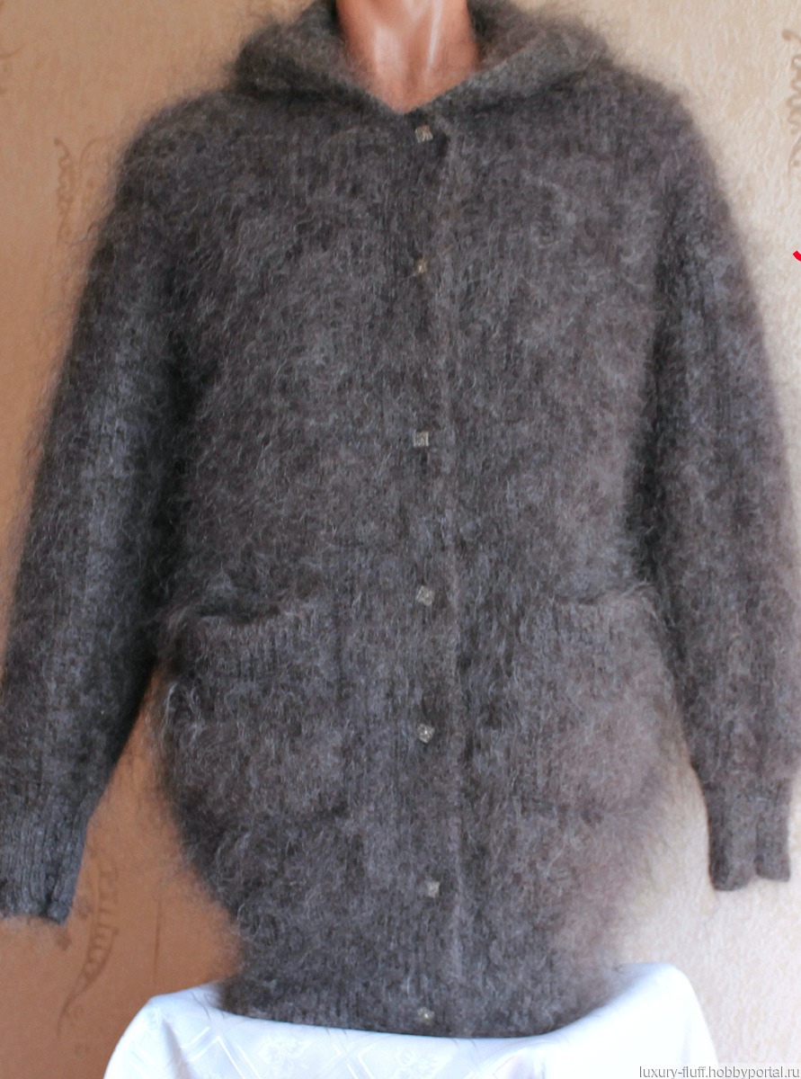 Пуховая кофта "Венера" выполнена из высококачественной мягкой пуховой пряжи.Силуэт изделия прямой,имеются накладные карманы.Работа связана английской вязкой.Длинна кофты 75 см.По индивидуальному заказу изделие можем связать любого размера и сделать кофту менее пушистой.