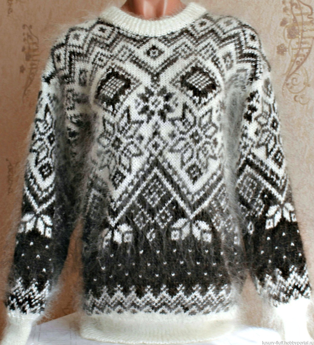 Нежный пуховый свитер из натурального козьего пуха ручной работы.