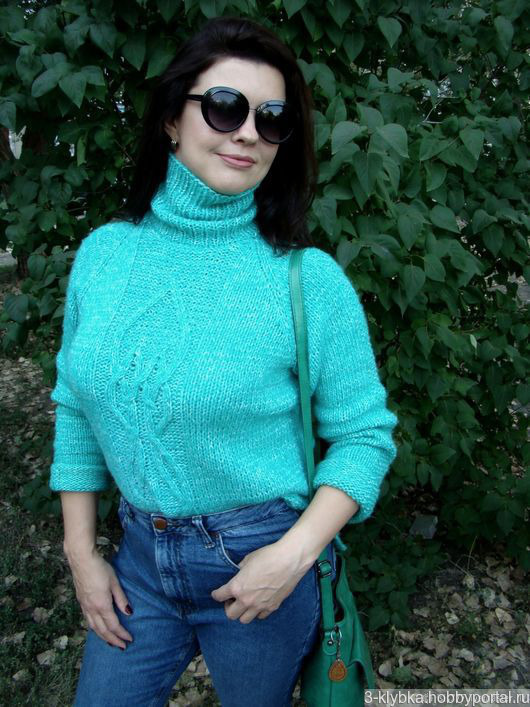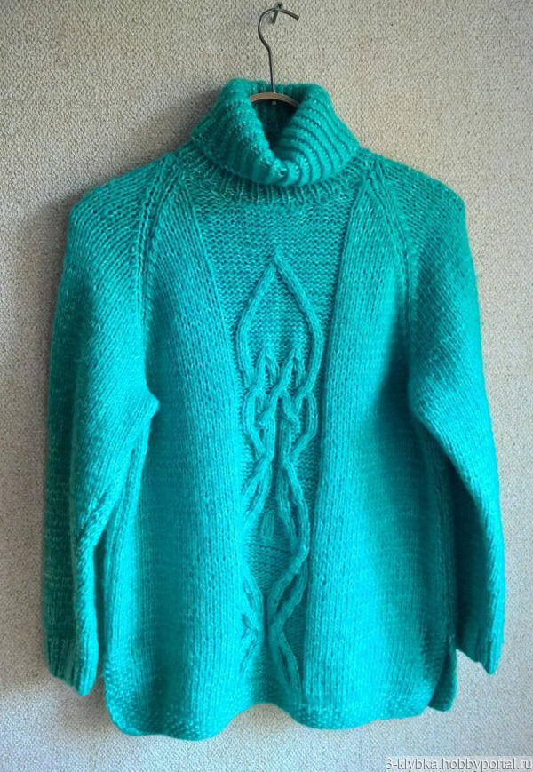 бирюзовый, пуловер вязаный, свитер женский, свитер вязаный, модный свитер, весенний, аранские узоры, спицы, свитер с косами, женская кофта вязаная, свитер хлопковый, свитер крупной вязки женский, свитер пушистый, зеленый свитер, Свитер бирюзовый