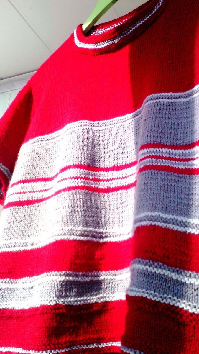 Ручная работа свитерок спицами "Скандинавия" выполнен из шерстяных ниточек в одно сложение, спицами 2,5 лицевыми и изнаночными рядами. Цвет используемой шерсти красный, темно серый и светло серый. Свитер с укороченным рукавами, его можно одевать как жилет с блузкой, рубашкой и как кофту. Комбинируется как со спортивным стилем (джинсы, легинсы) так и с офисным стилем - юбка, брюки. Размер кофты выполнен на 50-52, рост 164. На заказ выполню работу в указанных вами размерах и в цветовой гамме ниток.