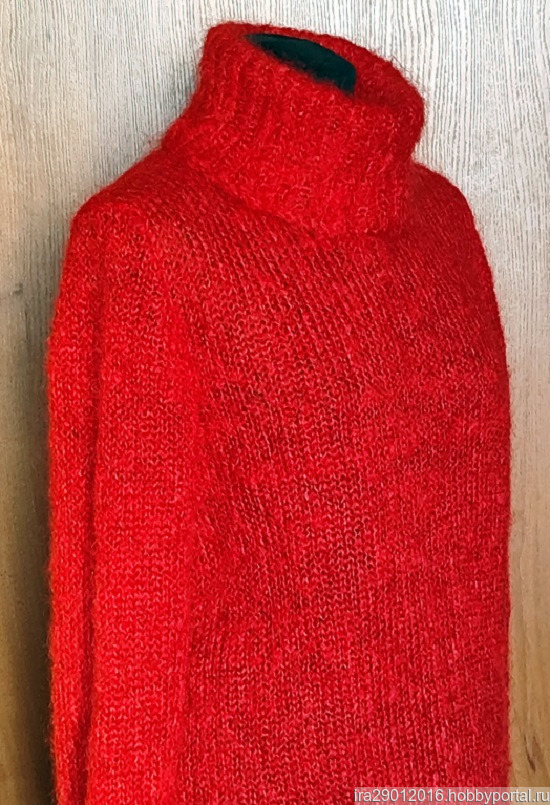 Свитер из итальянского настоящего мохера,ярко-красного цвета,с роскошным воротником стойка.Свитер подойдет для женщин прекрасных форм и для тех кто любит одежду "оверсайз",очень комфортный и теплый.Размеры:Полуокружность груди 56-58см,длина рукава от подмышки до края манжеты 50 см,длина изделия до края резинки 49 см.