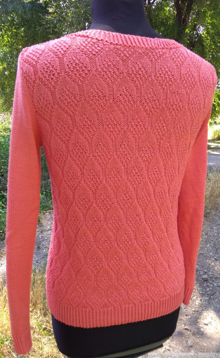 Свитерок на весну или осень. Очень мягкая акриловая нитка цвета "персик" подойдет к любой одежде. Эта модель поможет подчеркнуть свою индивидуальность и обладает отличным качеством. Не деформируется при стирке, не выцветает.