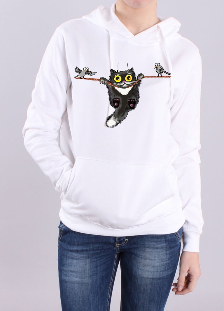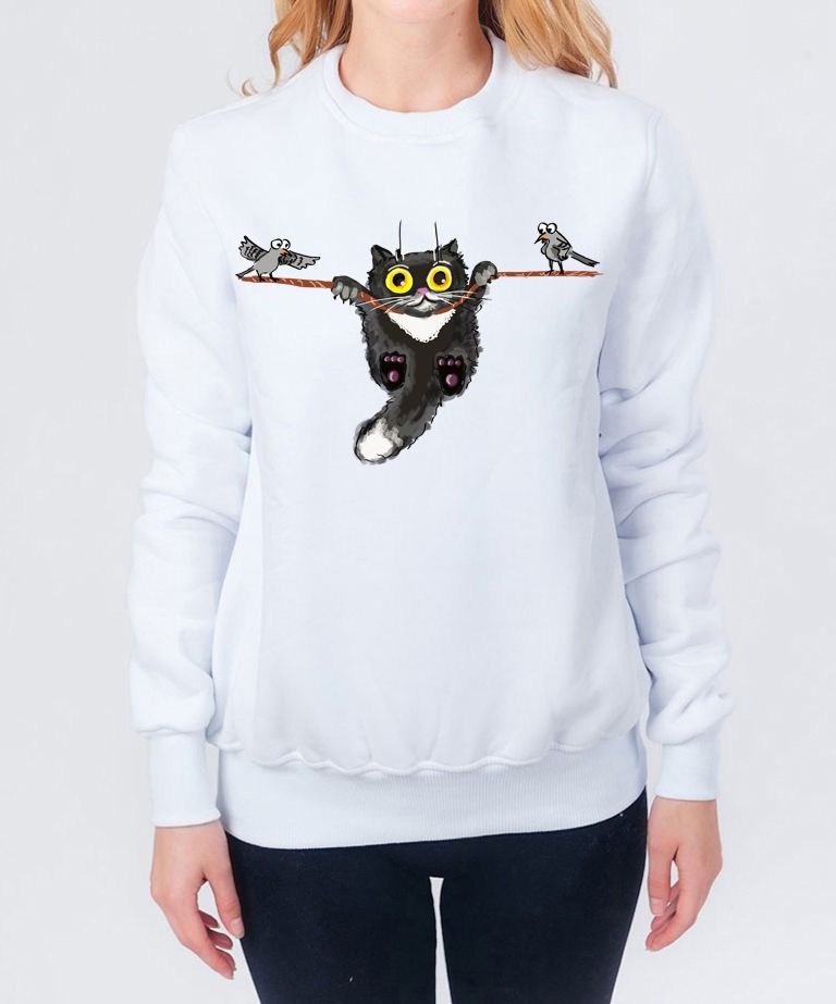 Толстовка, свитшот с авторским принтом "Кот на веревке".