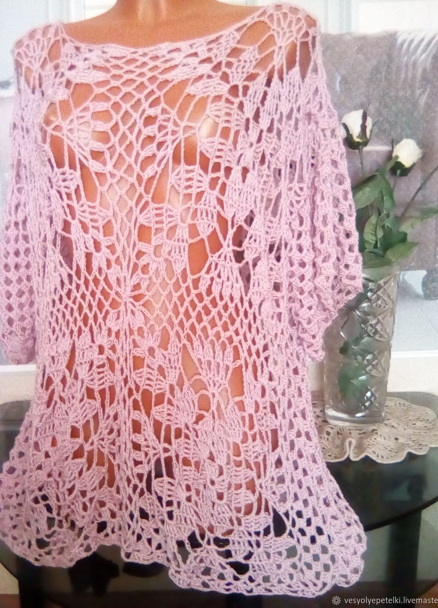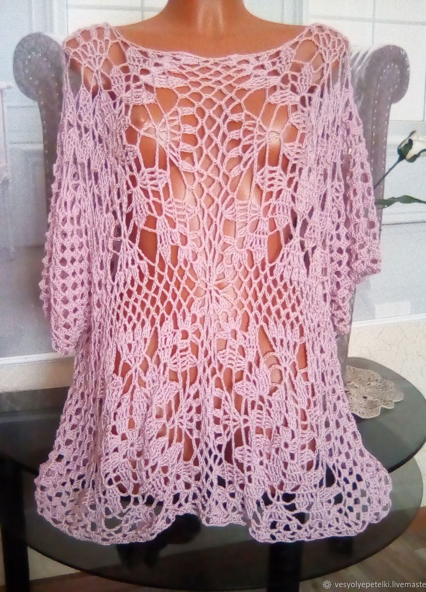 туника, крючком, туника вязаная, ажурный узор, пляжная туника, туника летняя, туника ажурная