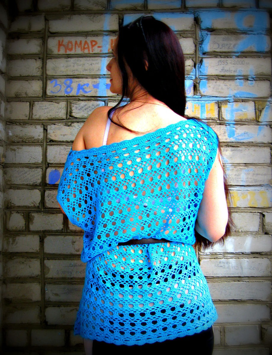 Туника "Лазурный берег".Связана она одной из самых моих любимых ниточек,итальянской вискозы.Очень нежная и приятная к телу пряжа, изящно струится при хотьбе. Но больше всего мне нравится то,что эта пряжа в жаркую погоду приятно холодит ,а значит в одежде из неё Вам будет комфортно в любую погоду