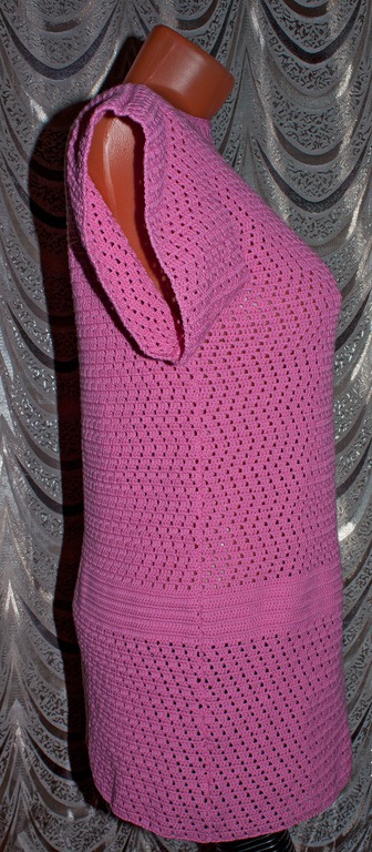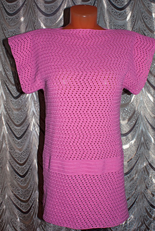 Туника связана крючком из 100% хлопка, вес 400 грамм. Длина туники 72 см, ОГ 90, ОБ 100.
