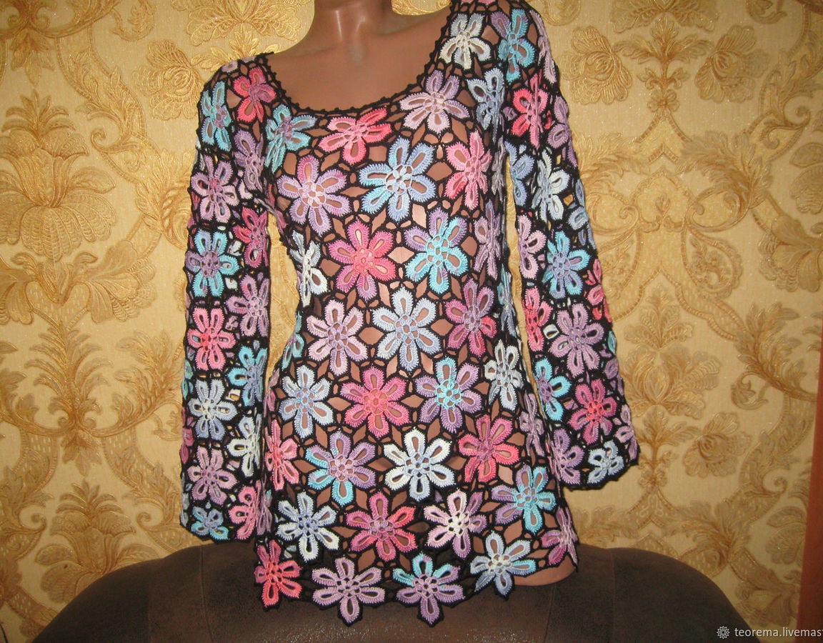 Туника связана мотивами из натурального хлопка секционного крашения.Рукав полной длины,подходит для любого времени года.Цветовая палитра очень насыщена,в этой тунике не останетесь незамеченной.