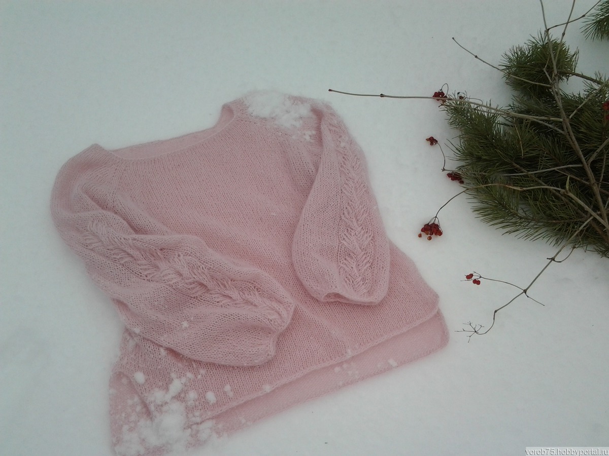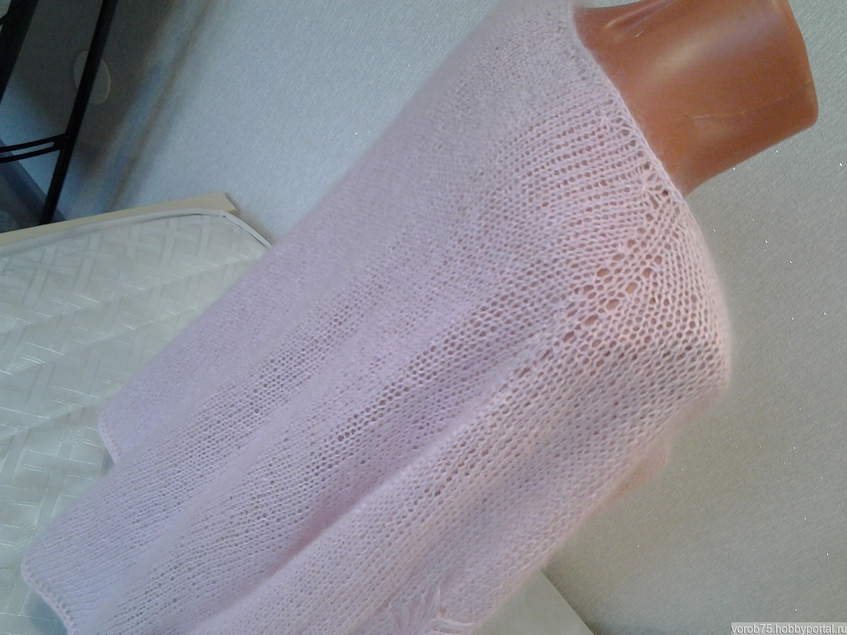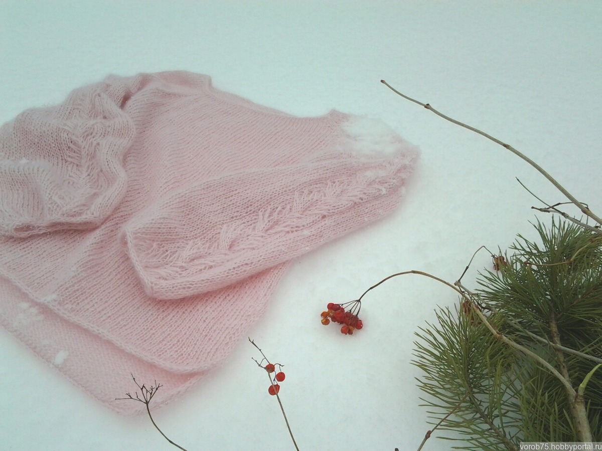 Кофточка связана из итальянского кид-мохера.Нивероятно мягкая , очень нежная , практически невесомая. Мне не хотелось перегружать эту нежность рисунками , но небольшая изюминка все-же есть , это очень красивые рукава. Вес этой кофточки всего 170гр.при этом она теплая. Фасон позволит носить ее под любую юбку, брюки , а качество пряжи - в любое время года. Связана кофточка на 48-50размер, но могу исполнить другого размера и цвета, срок изготовления 2 недели.