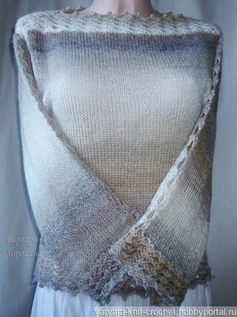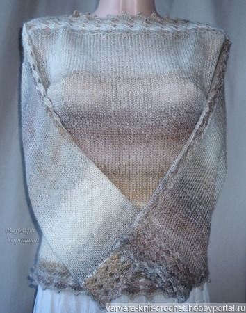 Изюминка модели - съемная деталь, которая поможет Вам смоделировать верхний вырез изделия в соответствии с Вашим вкусом или послужит в роли шикарного вязаного колье!