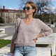 Нежный свитер из кид мохера. Глубокий V-образный вырез. Спинка связана лицевой гладью. Невероятно красивый бежево-фиолетовый меланжевый цвет.