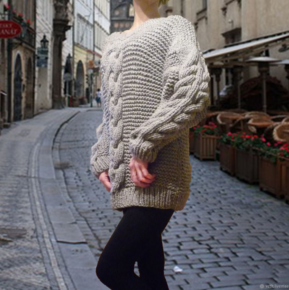 Вязаный свитер оверсайз из толстой пряжи с рельефным узором жгуты сделает ваш повседневный образ стильным и запоминающимся, а объемный силуэт этого свитшота придаст вам хрупкости. Отлично комплектуется с брюками, джинсами, юбками летящего кроя. Цена указана за работу, пряжа оплачивается отдельно