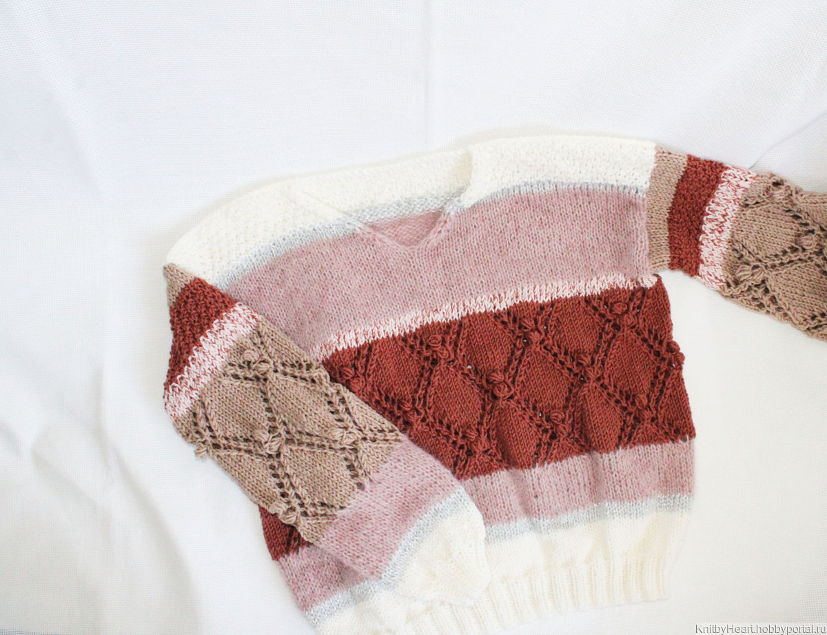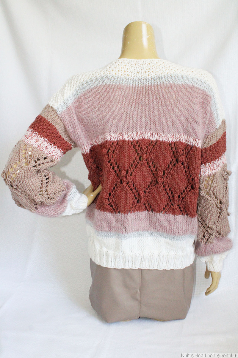 Стильный вязаный свитер ручной работы.