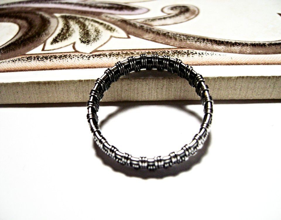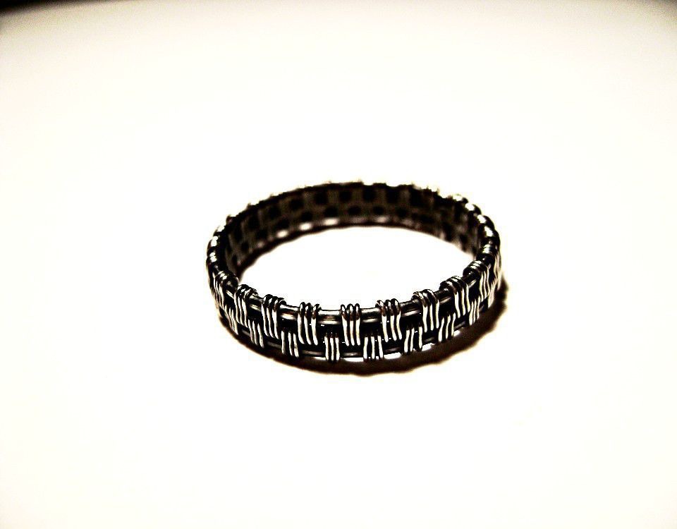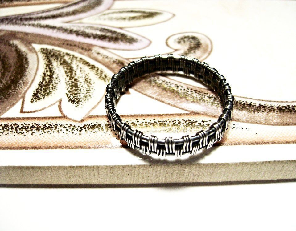 Кольцо унисекс из серебра 925 пробы выполнено полностью вручную в технике wire wrap, зачернено и отпалировано.