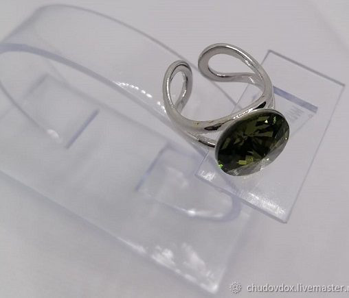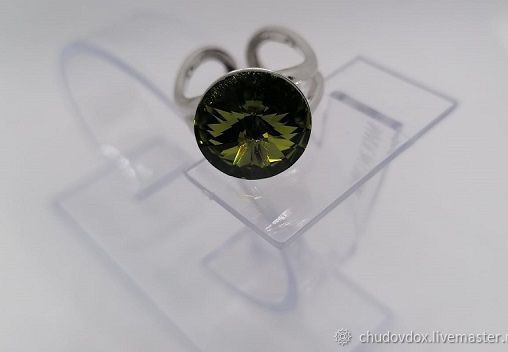 Кольцо с кристаллом SW-Rivoli "Олива". Благородный цвет, ничего лишнего. Размер кристалла 14мм.Основа для кольца - ювелирный сплав с родиевым покрытием. Безразмерное.