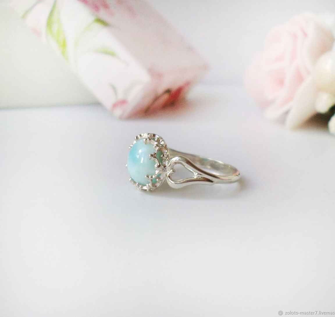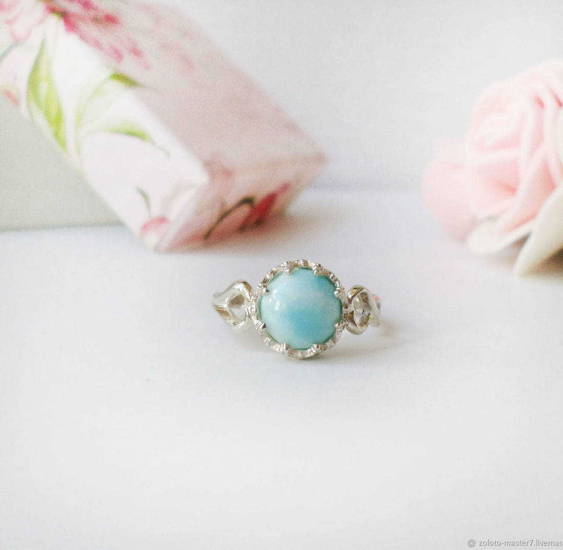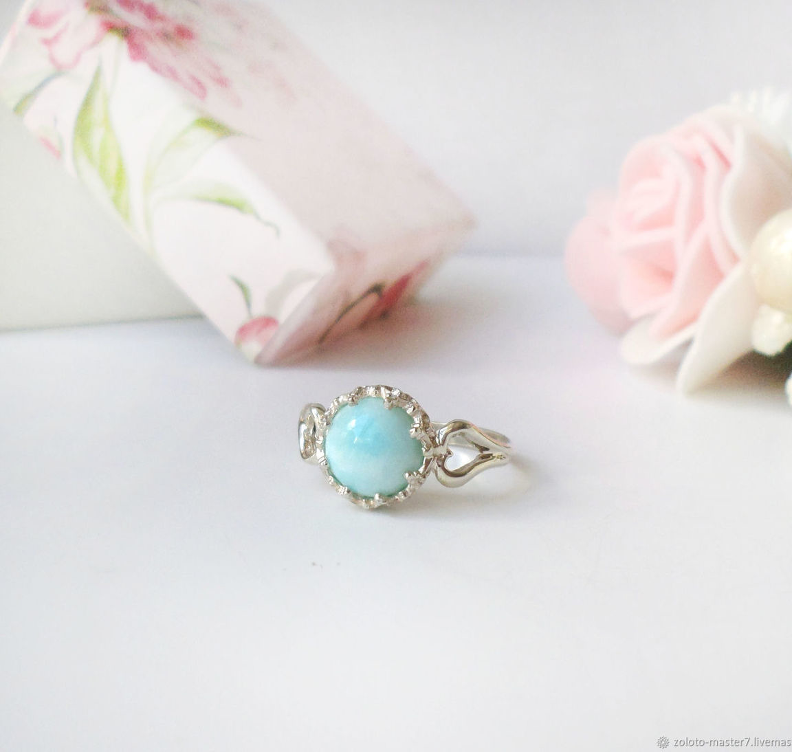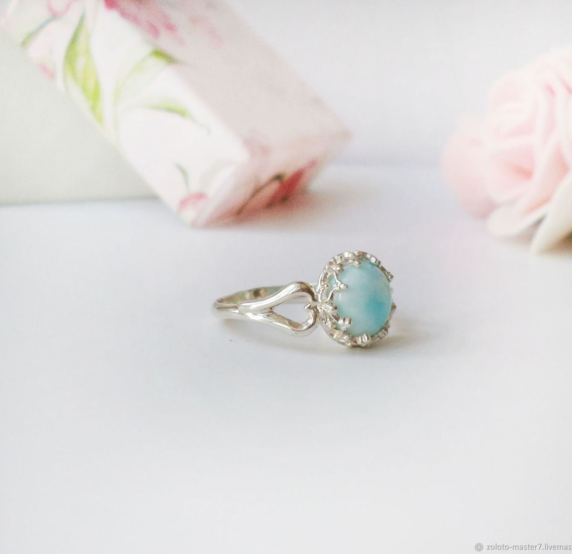 голубой, подарок, листья, украшения ручной работы, натуральные камни, натуральные материалы, серебро 925 пробы, кварц, кольцо из серебра 925, природные камни, ларимар, ларимар натуральный, ларимар в серебре