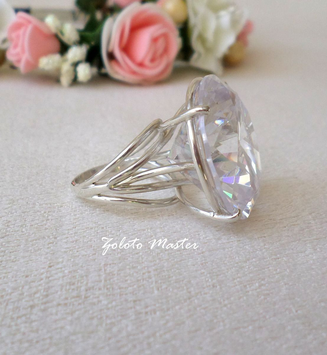 серебряный, фианит, крупный камень, ювелирные украшения, серебряное кольцо, кольцо с камнем, ювелирные камни, кольцо с крупным камнем, ювелирная огранка, крупный финит, кольцо с огромным камнем