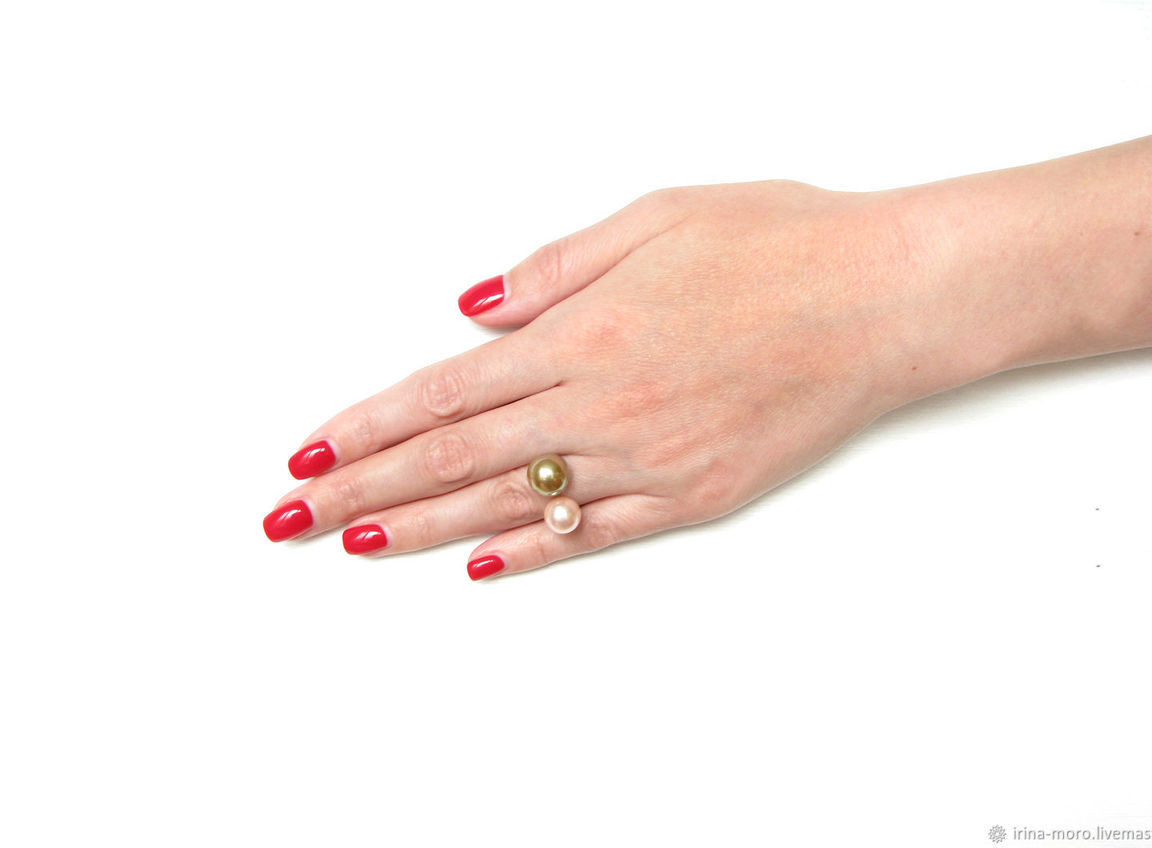 Стильное, необычное кольцо "Нежность" с двумя майорскими жемчужинами. Размер кольца регулируется. Цвет жемчужин можно изменить. Диаметр жемчужины 12 мм и 10 мм. Кольцо с жемчугом сделано из гипоаллергенной позолоченной фурнитуры высокого качества (Южная Корея).