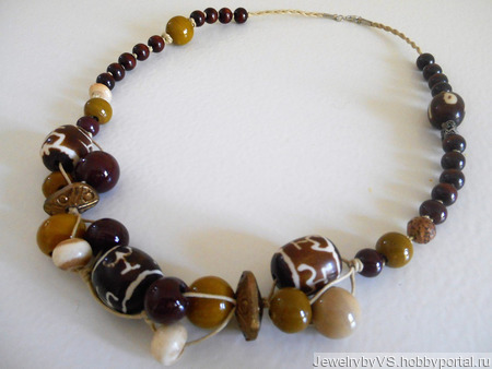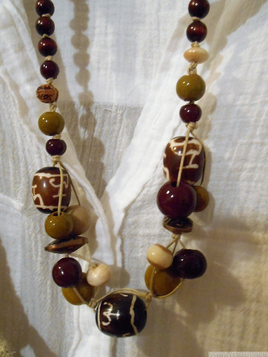 Бусы в этно стиле в коричнево-оливковой гамме выполнены в технике плетения из вощеного шнура. Длина - 67 см.