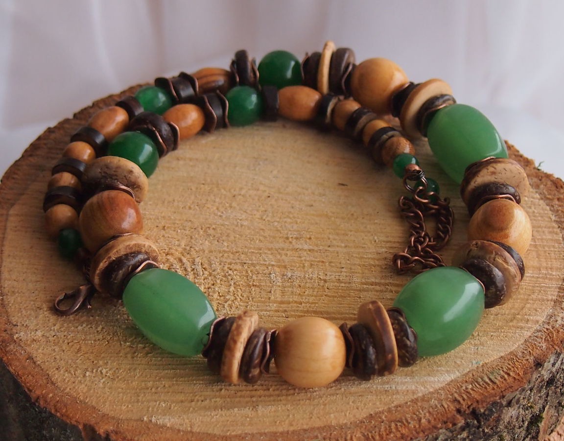 бусы, бохо-стиль, нефрит, комбинированный, бусы ручной работы, бохо, необычное украшение, подарок 2017, кокос, бохо бусы, необычные бусы, слива, первобытные