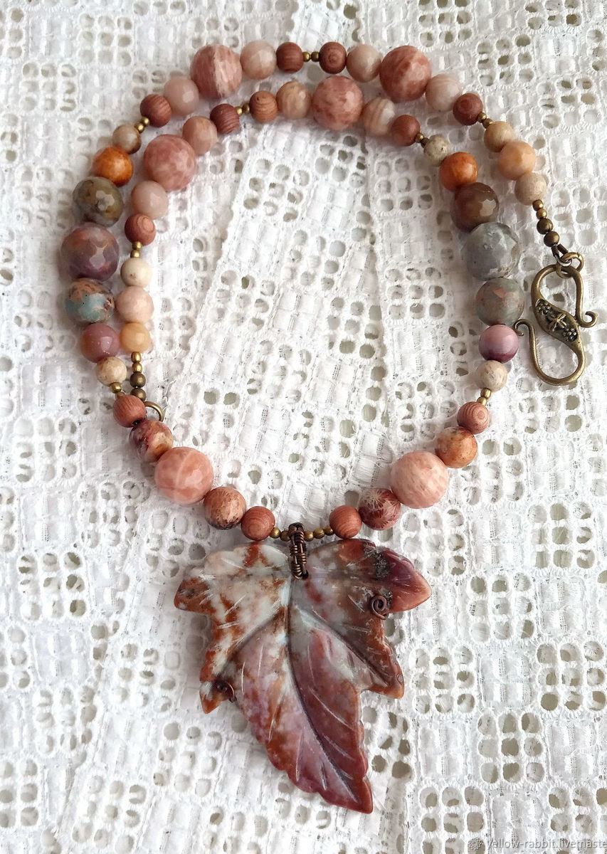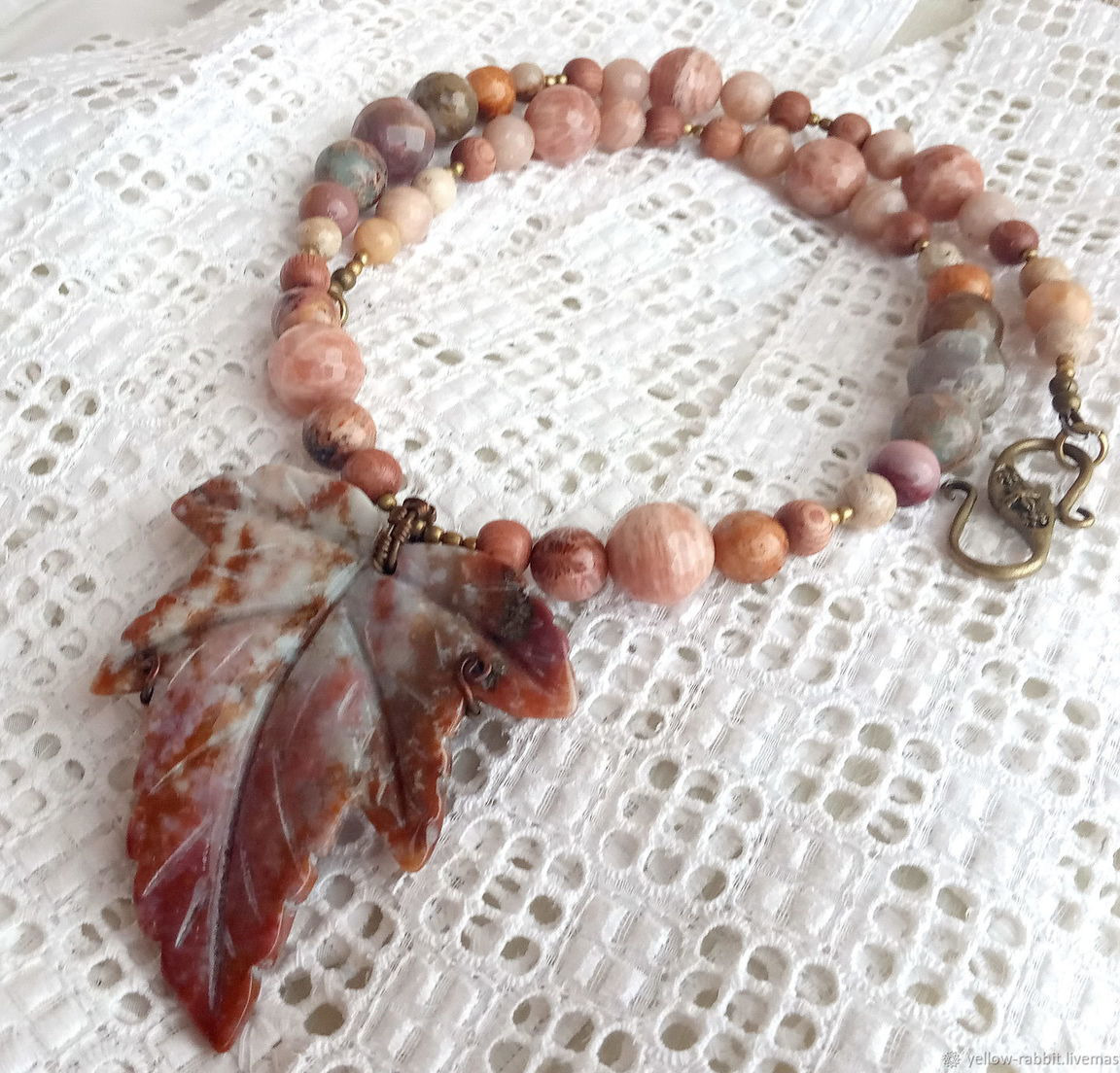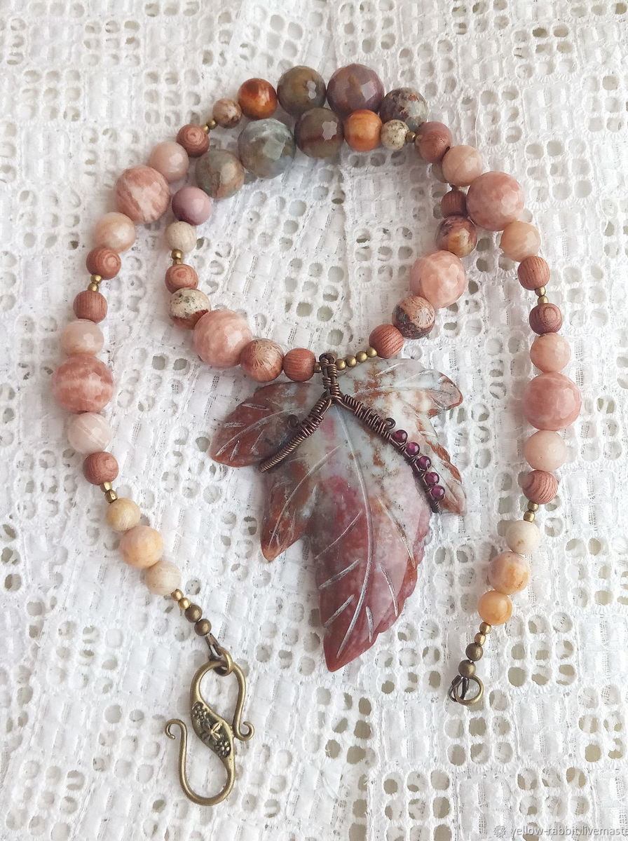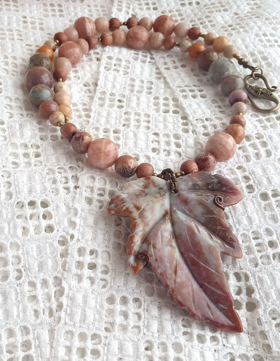 розовый, бежевый, украшения из проволоки, украшения из меди, украшения с гранатом, колье с резным камнем, необычные украшения из натуральных камней, авторские украшения из натуральных камней, нежные украшения с резным камнем, украшения с листьями, украшения на шею с резным камнем, украшения с листьями из натуральных камней, кулон резной лист, подвеска резной лист, авторские украшения с резным камнем, украшения с солнечным камнем, украшения с деревянными бусинами, украшения из проволоки и камня, украшения из меди камня