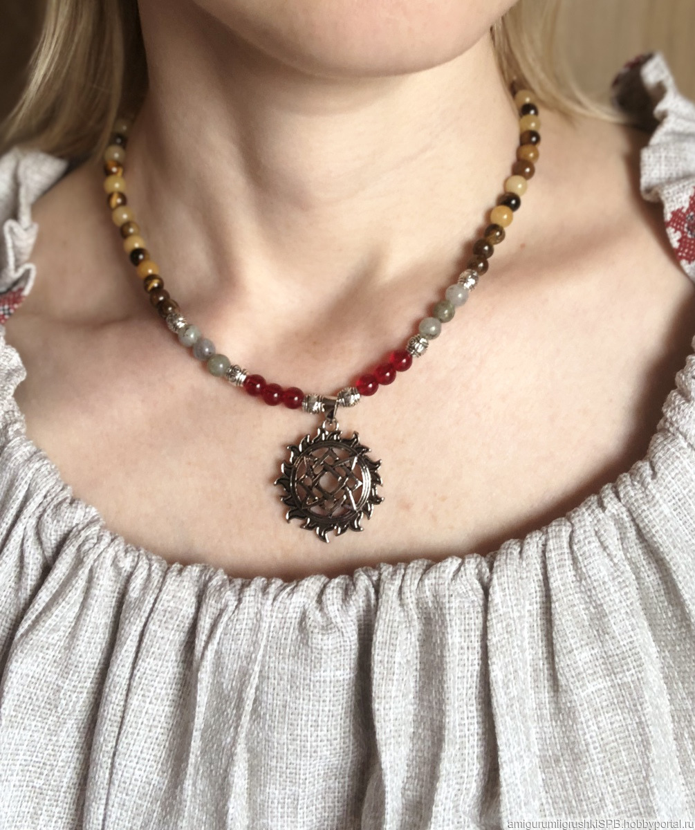 ручная работа, бусы, солнце, ожерелье, бижутерия ручной работы, украшения, славянские украшения, звезда лады