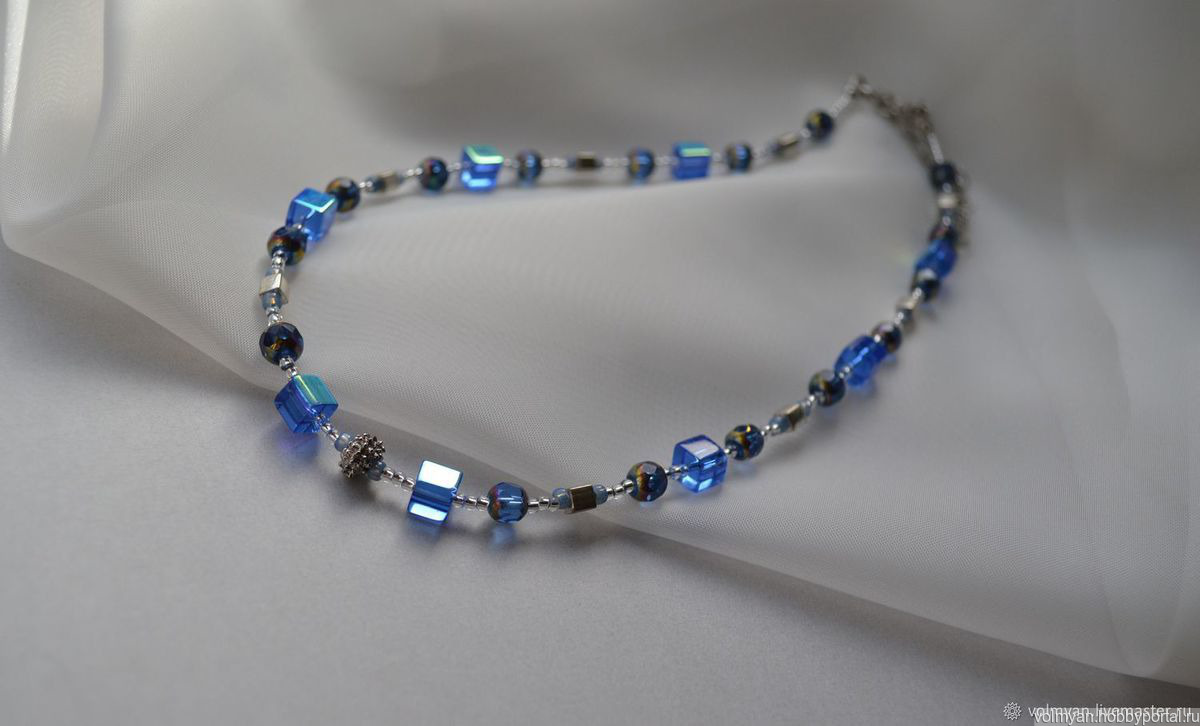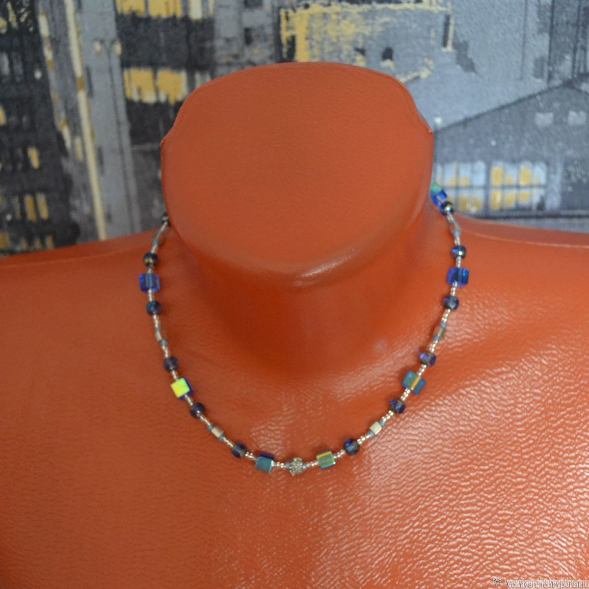 колье голубое, чокер купить москва, колье ручная работа, чокер женский купить, чокер купить спб, чокеры фото, чокер кубики, чокер из кубических бусин, женские чокеры купить, Coeur de Lion, кубические бусины, колье кубики, чокер голубой, чокер с кубиками, чокер с голубыми кубиками