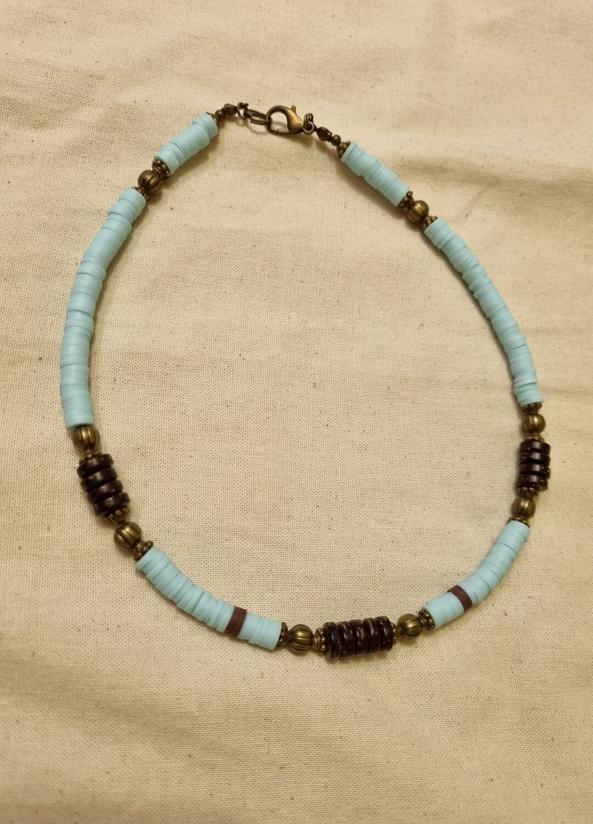 голубой, бусы, коричневый, колье, колье ручной работы, бусы ручной работы, чокер, латунь, чокер ручной работы, кокос, чокер женский, каучук, каучуковое колье