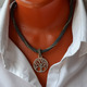 Круглая подвеска в виде дерева придает жгуту из бисера этнический характер
