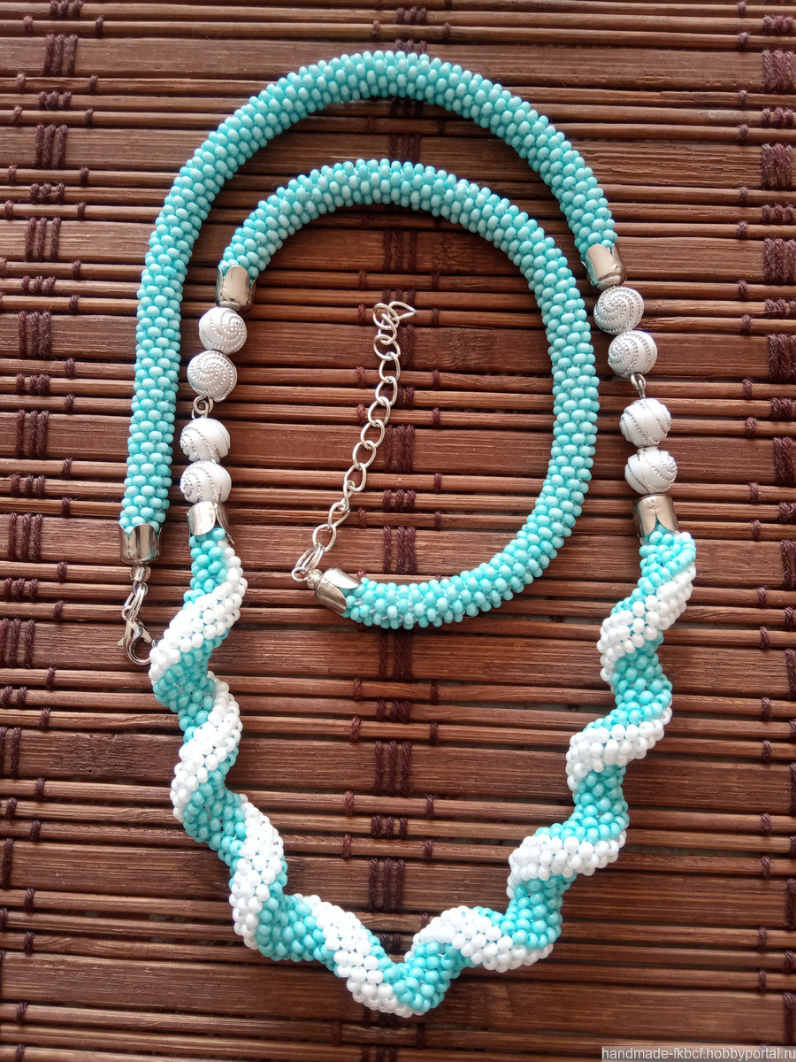 Колье из чешского бисера и бусин, плетение " зигзаг" в сочетании с бусинами. Эффектно смотрится на одежде с удлиненным вырезом или с блузкой рубашечного покроя, а также с водолазкой. Можно носить в офис или на праздник, подбирая в тон одежды.Чешский бисер не выгорает, а значит исключает потерю цвета.Хорошо сочетается с черным цветом, желтым, белым,фиолетовым, коричневым.