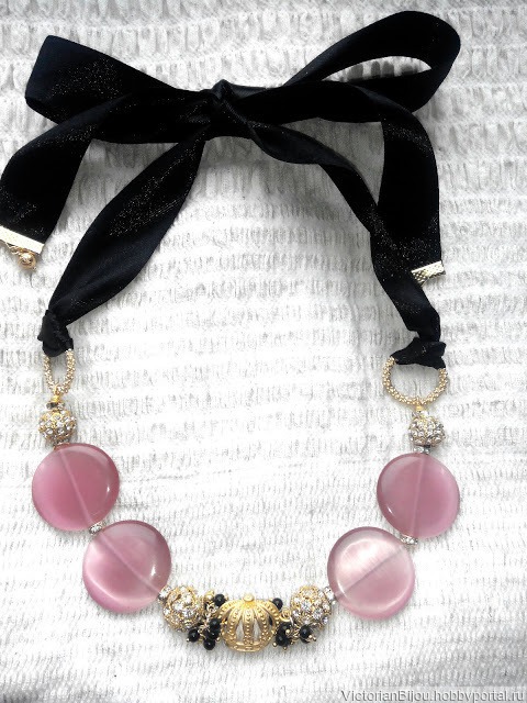 Колье для завершения элегантного образа. Сочетание розового кварца с черным агатом в позолоченной фурнитуре производства Италия, дополнит любой ваш наряд , будь то блуза или платье с декольте. Репсовая лента придает легкость колье и удобство в пользовании