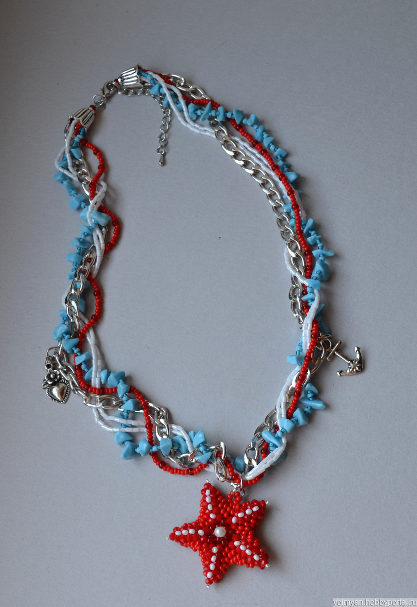 колье ручной работы, колье из бисера, украшение с цепочками, колье на каждый день, летнее колье, яркое колье, колье из камней, колье купить в москве, чокер купить москва, многорядное колье, чокер женский купить, чокер из бусин, чокер купить спб, чокер с цепочками, морская звеза, бисерное украшение на шею