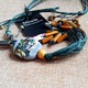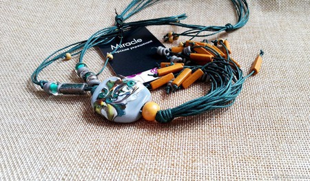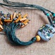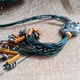 Колье на вощеных шнурах с кистью, зеленое желтое, лэмпворк, керамика