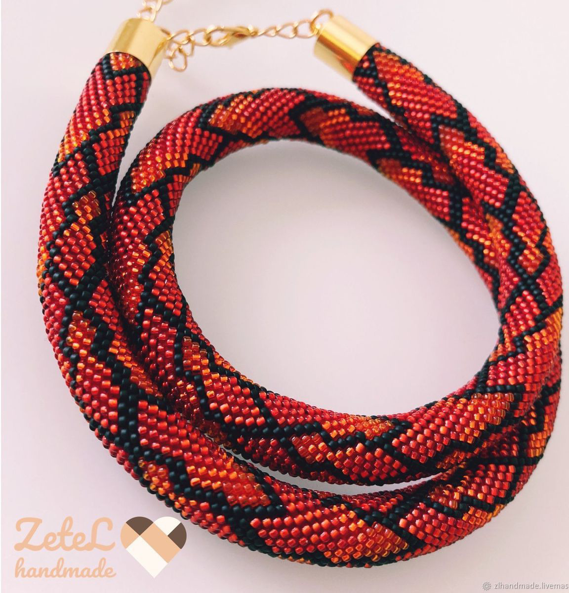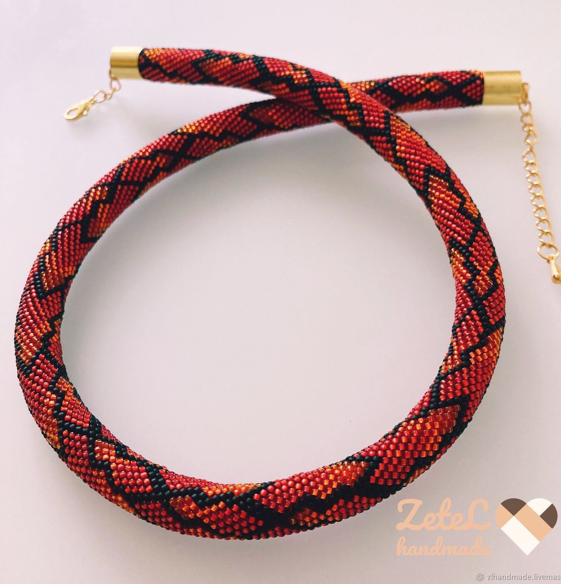 Яркое украшение для огненных красавиц! Жгут-колье связан из качественного японского бисера.