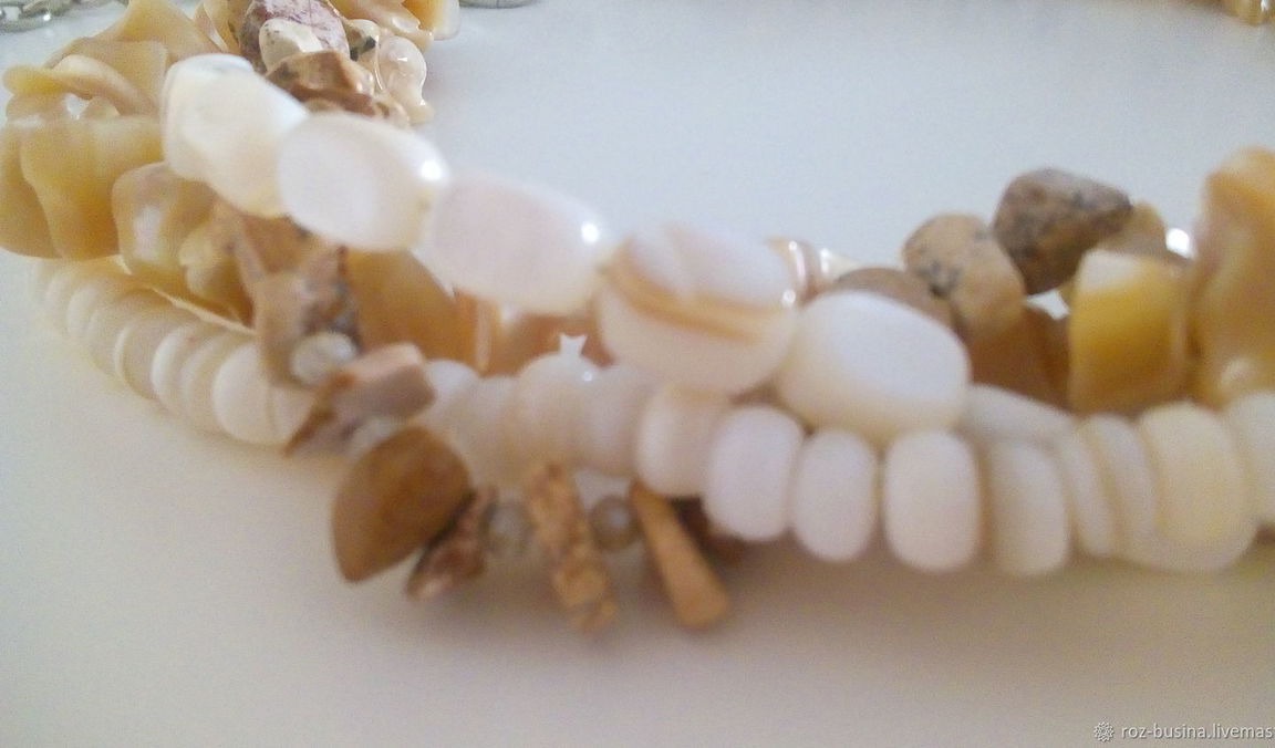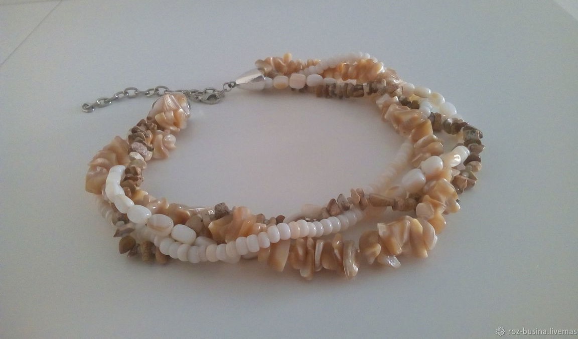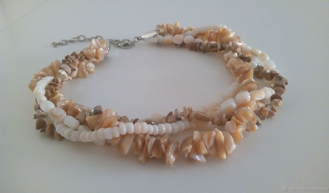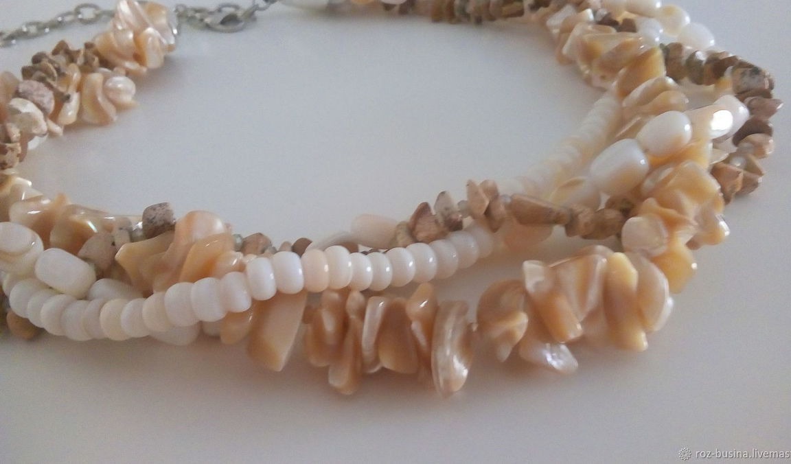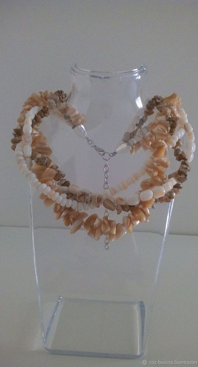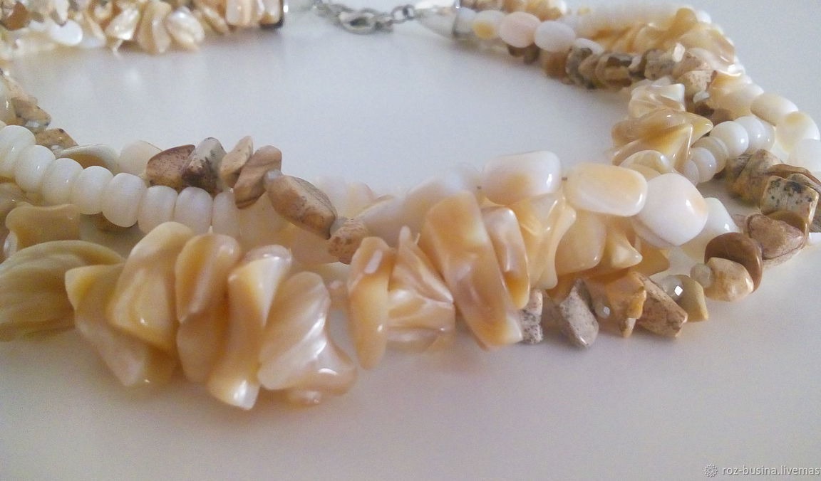 бусы, бежевый, яшма, колье, перламутр, кристаллы, колье из камней, бусы из агата
