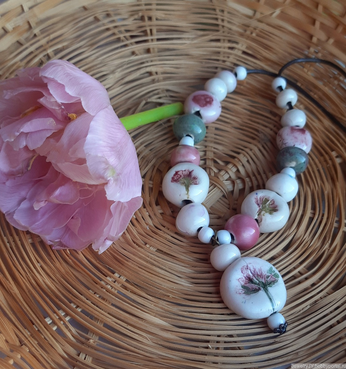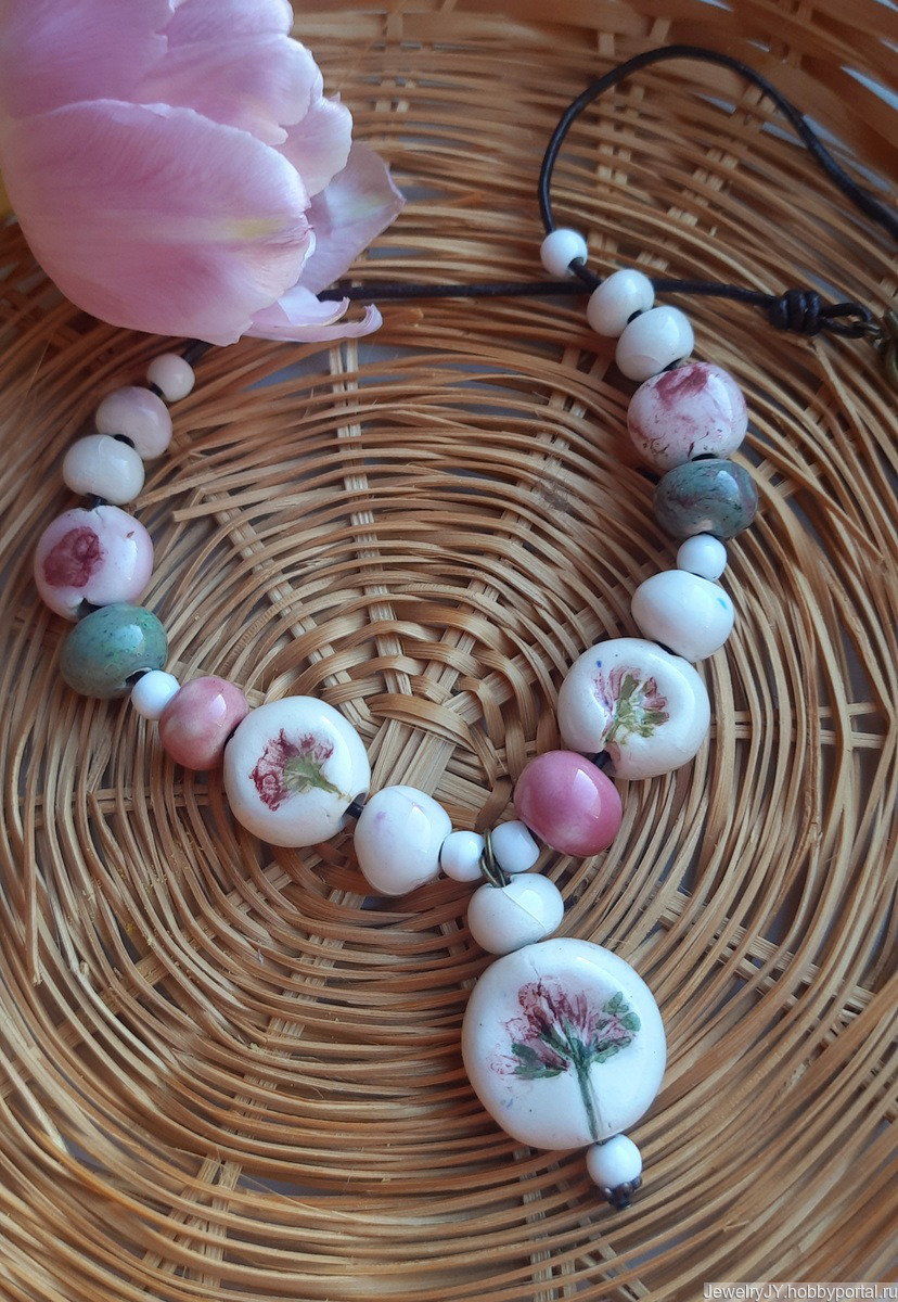 цветочный, подарок девушке, подарок на 8 марта, подарок жене, бохо-стиль, колье ручной работы, нежно-розовый, бохо, керамика ручной работы, прованс, БОХО украшение, прованский стиль, богемный стиль