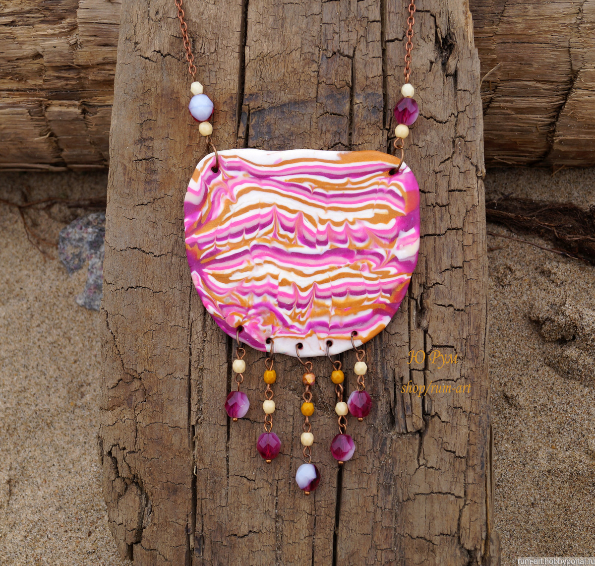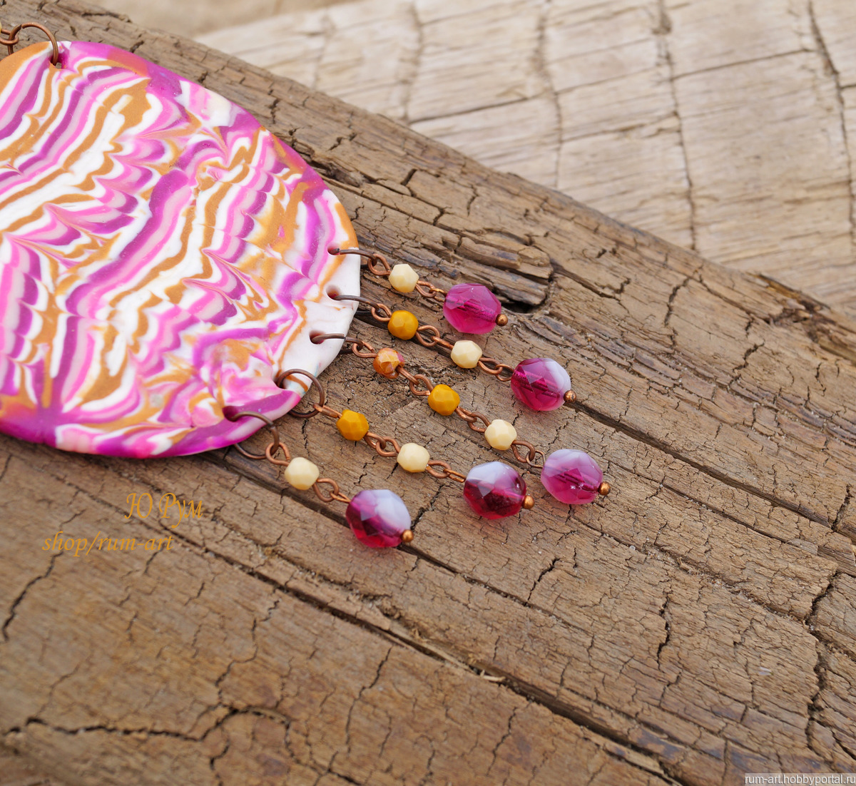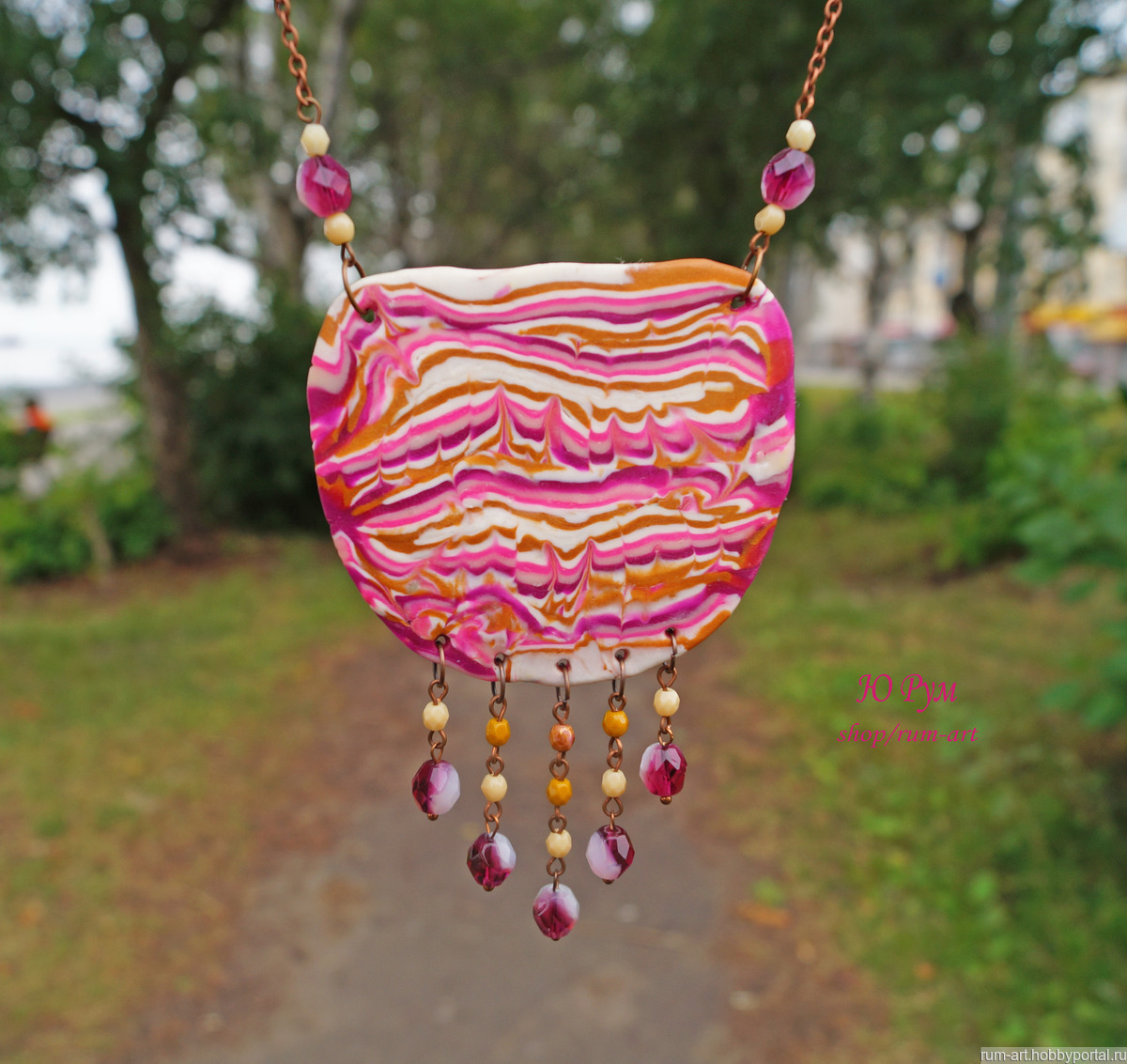 Колье " Розовый бум" выполнено из запекаемой польмерной глины. Использована металлическая фурнитура цвета медь, стеклянные и металлические бусины.