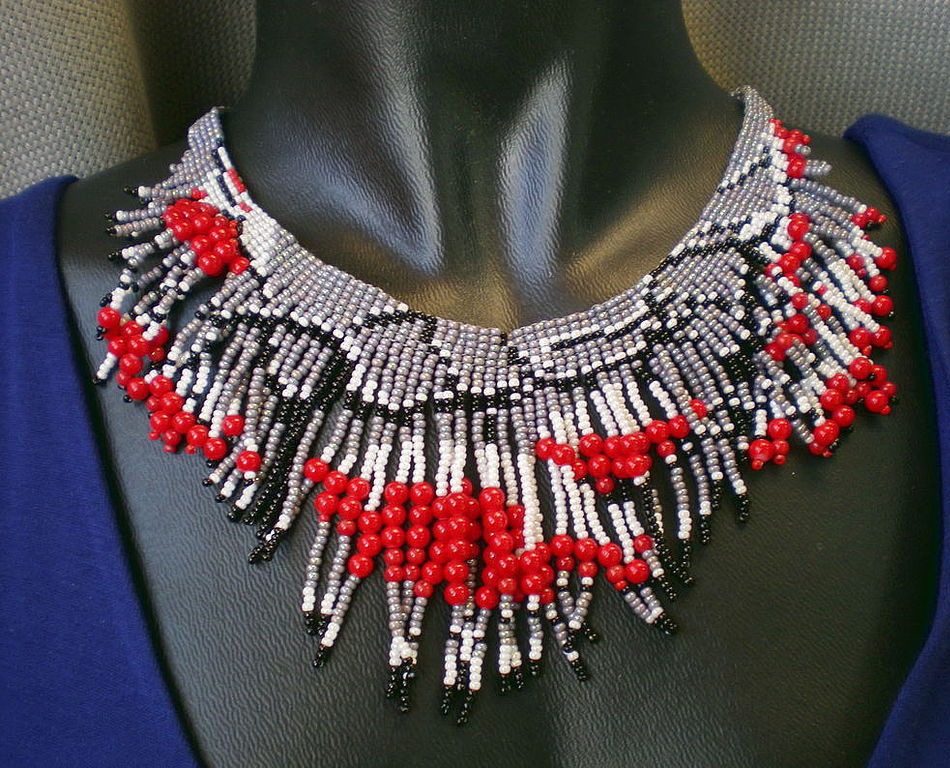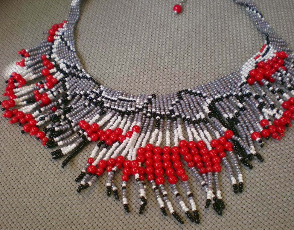 рябина, колье, колье ручной работы, колье из бисера, колье на каждый день, колье с кораллом