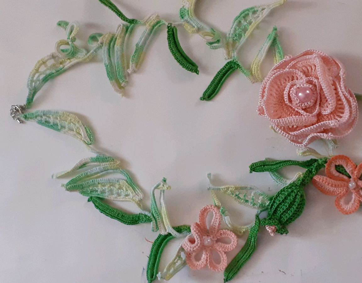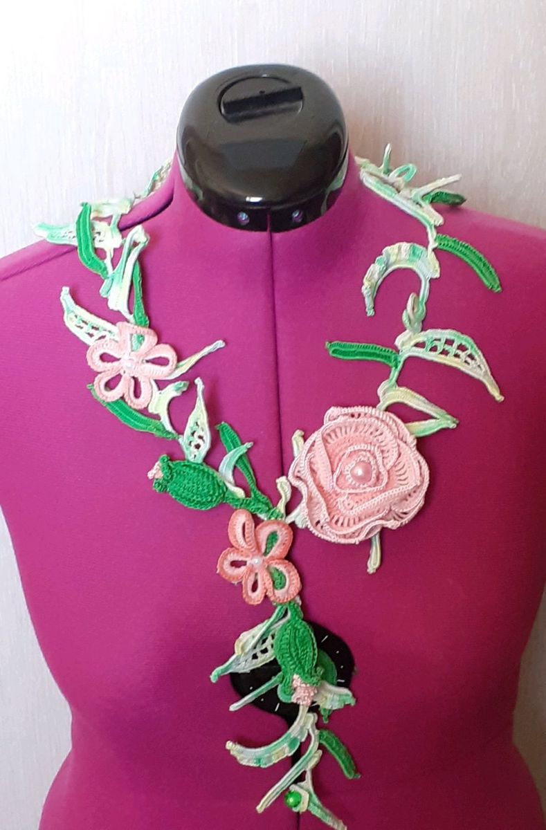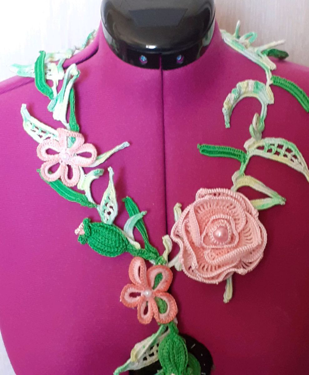 Колье выполнено в технике ирландское кружево из 100% итальянского хлопка.Колье станет вашим любимым украшением. Длина до середины 70 см + застежка цепочка 10 см,с помощью которой его можно удлинить