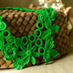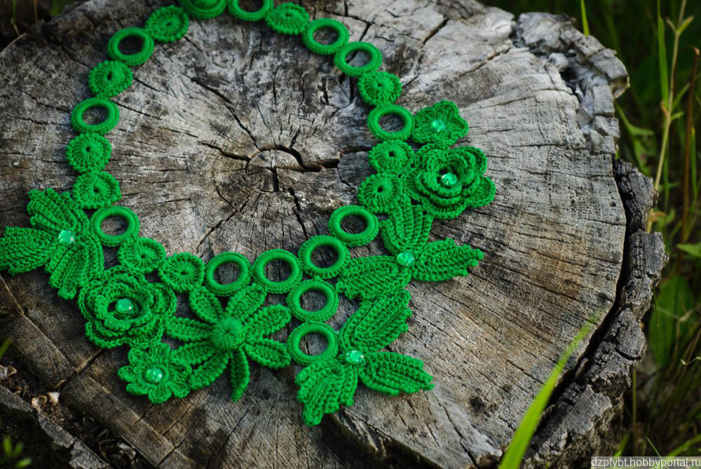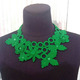 Вязаное колье из пряжи насыщенного зеленого цвета. украшено стразами