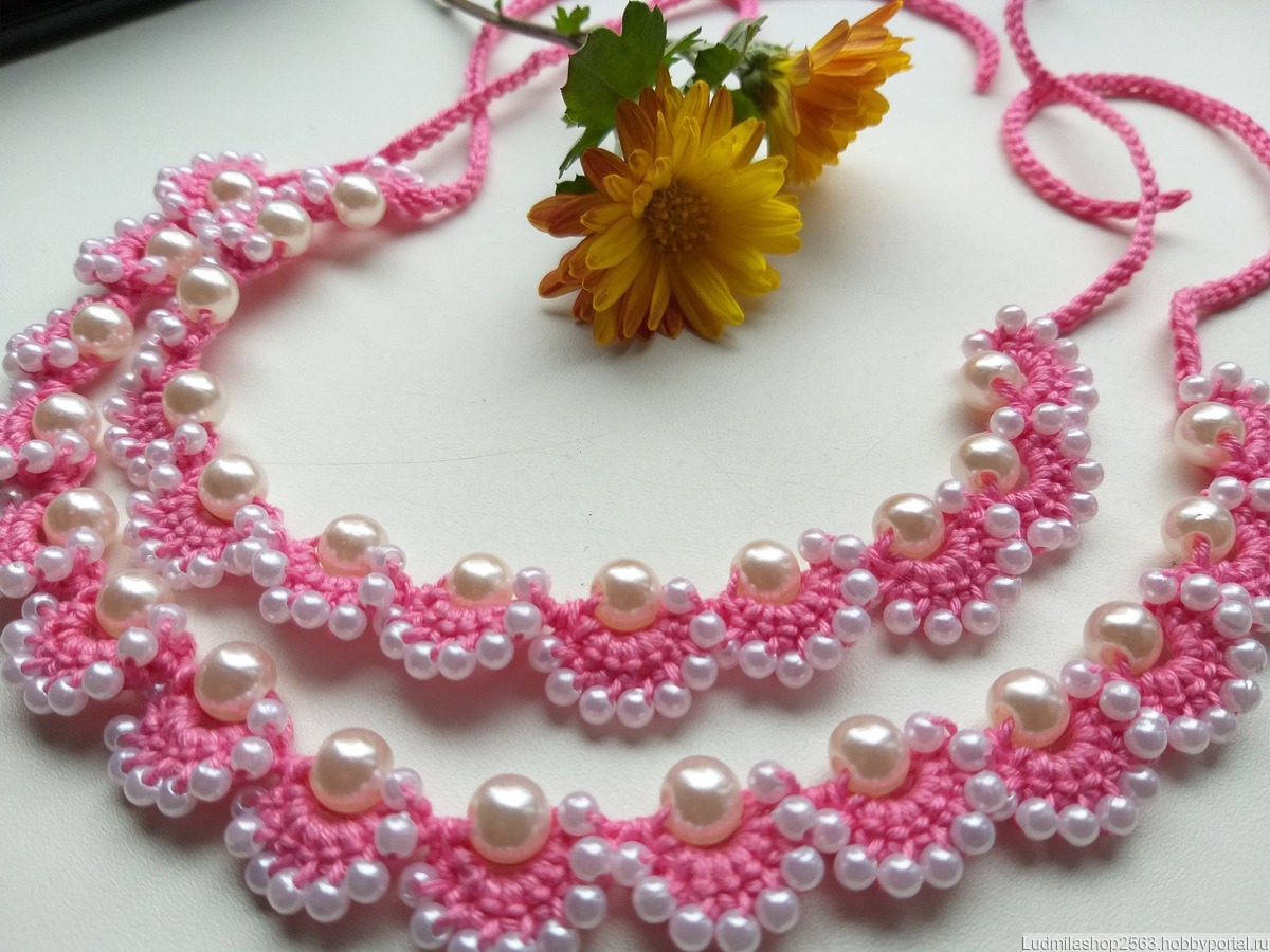 для девочки, для девушки, для женщин, колье, колье ручной работы, колье крючком