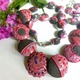 бусы, комплект украшений, украшение на шею, hand made, серьги, колье, украшение ручной работы, комбинированный, колье из полимерной глины, полимерная глина, купить подарок, beads, пластика, хоббипортал, комплект колье серьги, заказать украшение, polymer clay, вечернее, розово-серый, макуме гане, серо-розовое украшение