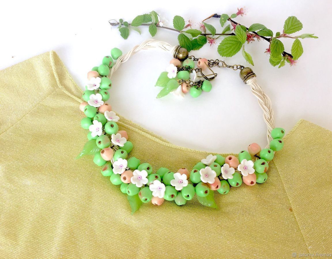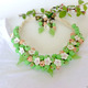 зелёный, мятный, лето, подарок девушке, романтический стиль, комплект украшений, колье ручной работы, комплект колье и серьги, летнее украшение, нежное колье, выпускной бал, романтика, яблочки, колье летнее, колье и серьги купить, колье для девушки, колье из ягод, ягодное колье украшение, комплек украшений купить