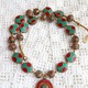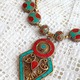 Непальская латунная подвеска с инкрустацией кораллом и бирюзой.