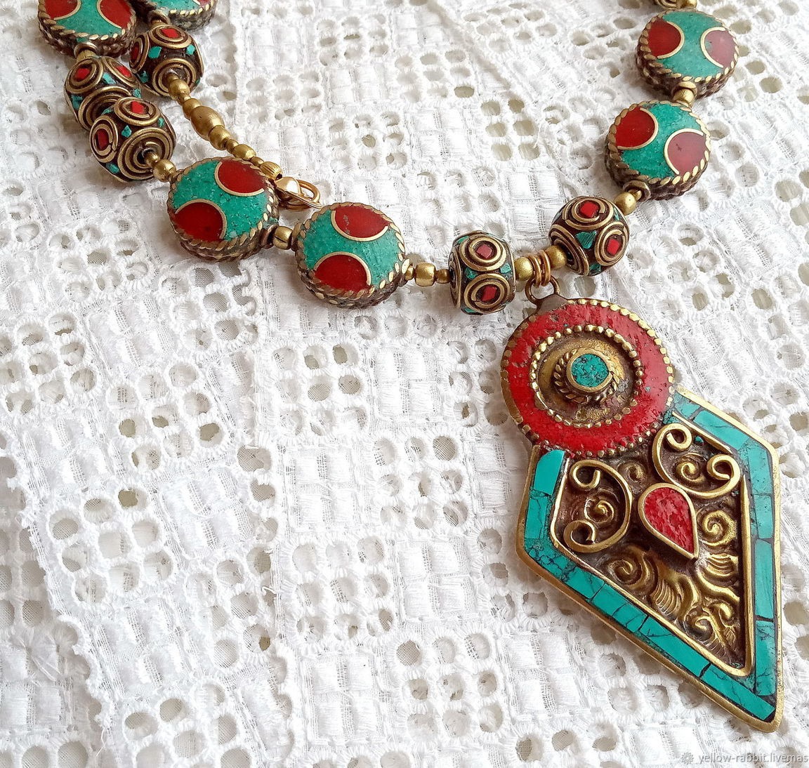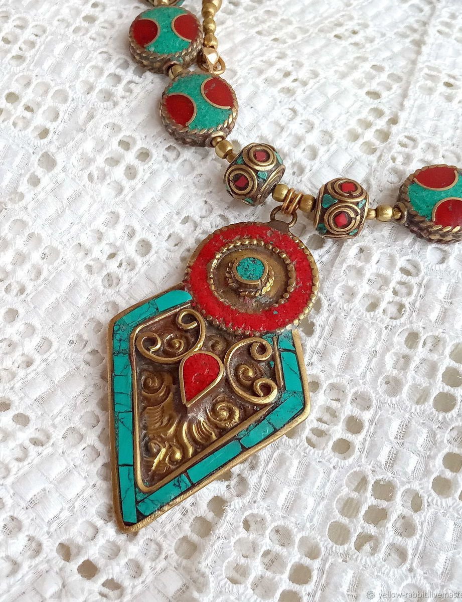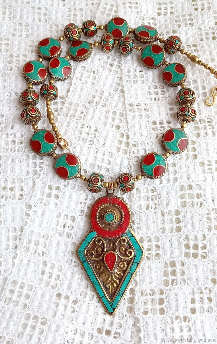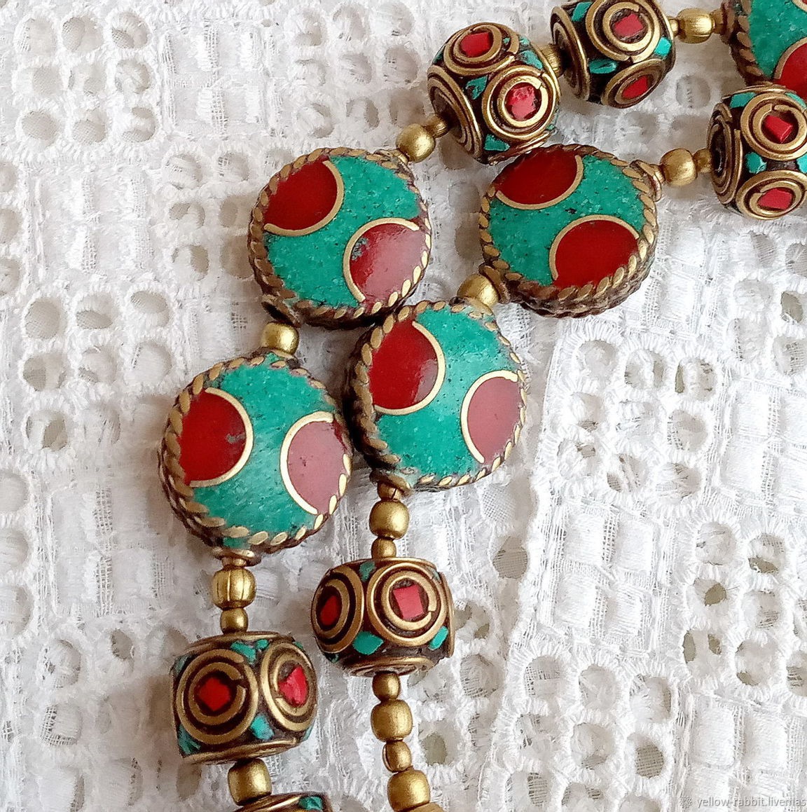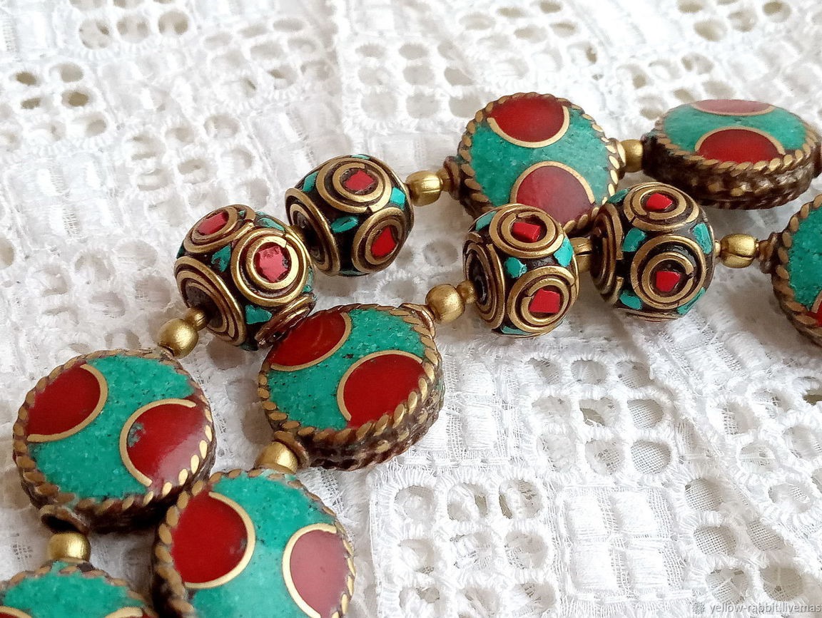 Непальских бусин с кораллом и бирюзой есть еще некоторое количество, разных форм, не только использованных в этой вещи, возможно изготовление бус на заказ.