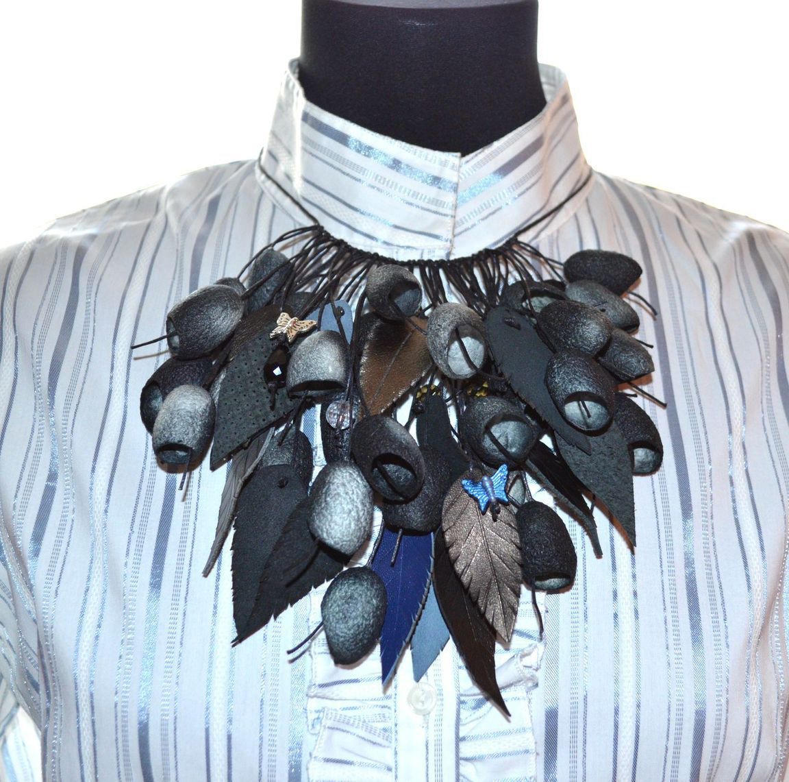 бохо-стиль, украшение на шею, колье ручной работы, летнее украшение, темно-серый, жабо, джинсовый стиль, БОХО украшение, бохо колье, серый цвет, романтичное украшение, колье с цветами, летнее колье, яркое колье, серое колье, романтичное колье, шелковое украшение, колье из коконов, тутовый шелкопряд